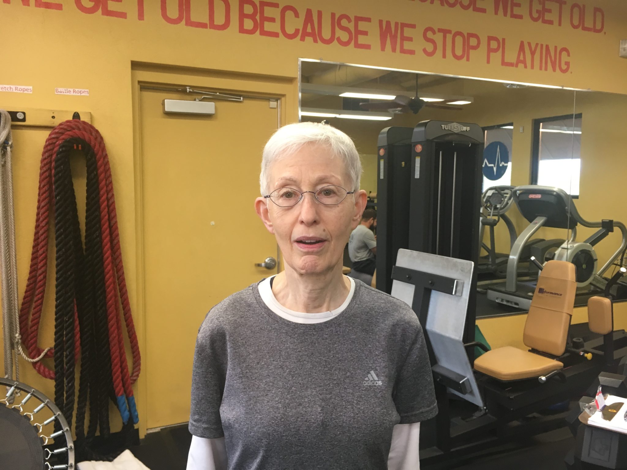 I was in physical therapy after my hip replacement surgery and then for my paralyzed leg. When I was told there was nothing more they could do for me they recommended I work with a personal trainer who had experience with challenging clients. I worked with one fellow for a while, but when he became unavailable I looked for someone new.