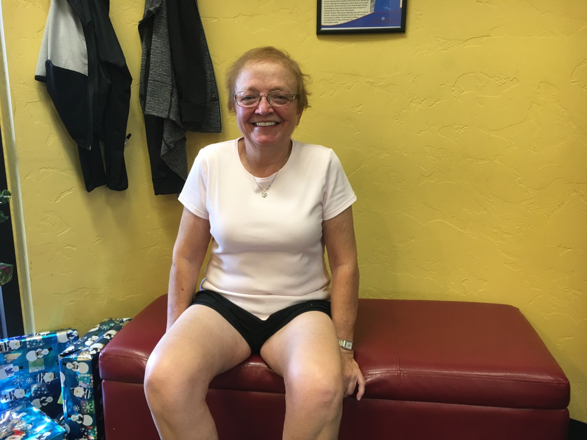 Come into BodyBasics on any given Monday, Wednesday, or Friday and you are bound to run into this month’s Client Spotlight, Kelly Frost. Kelly started training with us at the suggestion of her physical therapist Kim Blanchard from Ideal Physical Therapy after the two of them were discussing the benefits of continuing on with supervised exercise programming to support further improvement of her balance, hip mobility, and total body strength. Kelly did not need much convincing having worked with a personal trainer in her past when she lived in Portland. She called and scheduled her evaluation and has been going strong since.