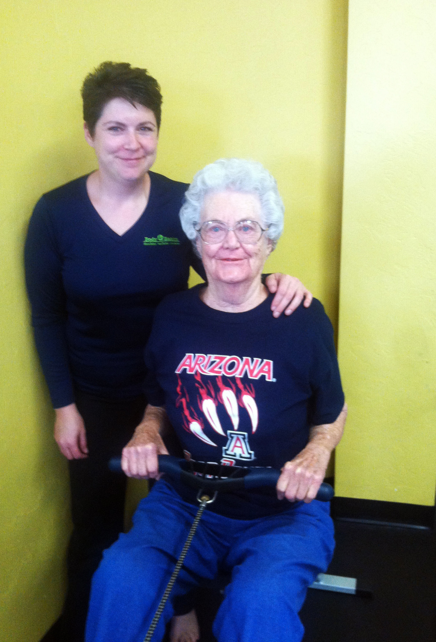 Meet Marge Bock, 88 years young and an avid sports fan. She spends her summers in Omaha but while she’s in Tucson, she can be found training with Maureen. They have been working together for the past 3 years and when Marge first came to BodyBasics, she declined to be weighed because she was so uncomfortable.